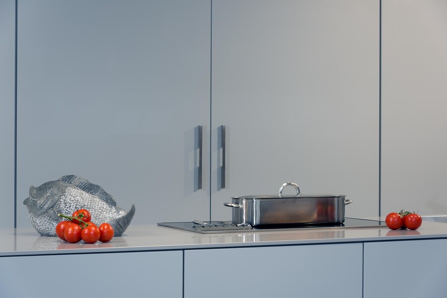 Sie haben sich in Ihrer neuen Küche für samtmatte Fronten entschieden? Dann achten Sie darauf, Spritzer wie von Tomatenketchup oder Rotwein, aber auch Fettspritzer, umgehend wegzuwischen. Andernfalls kann es passieren, dass sie einsickern und dauerhafte Flecken hinterlassen.
