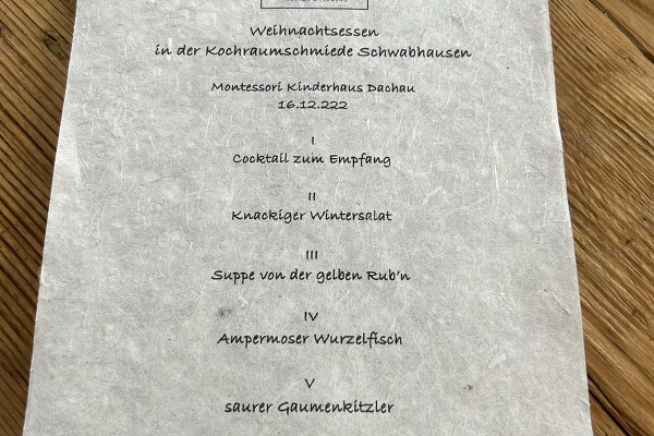 Weihnachtsessen Montessori Kindergarten Dachau